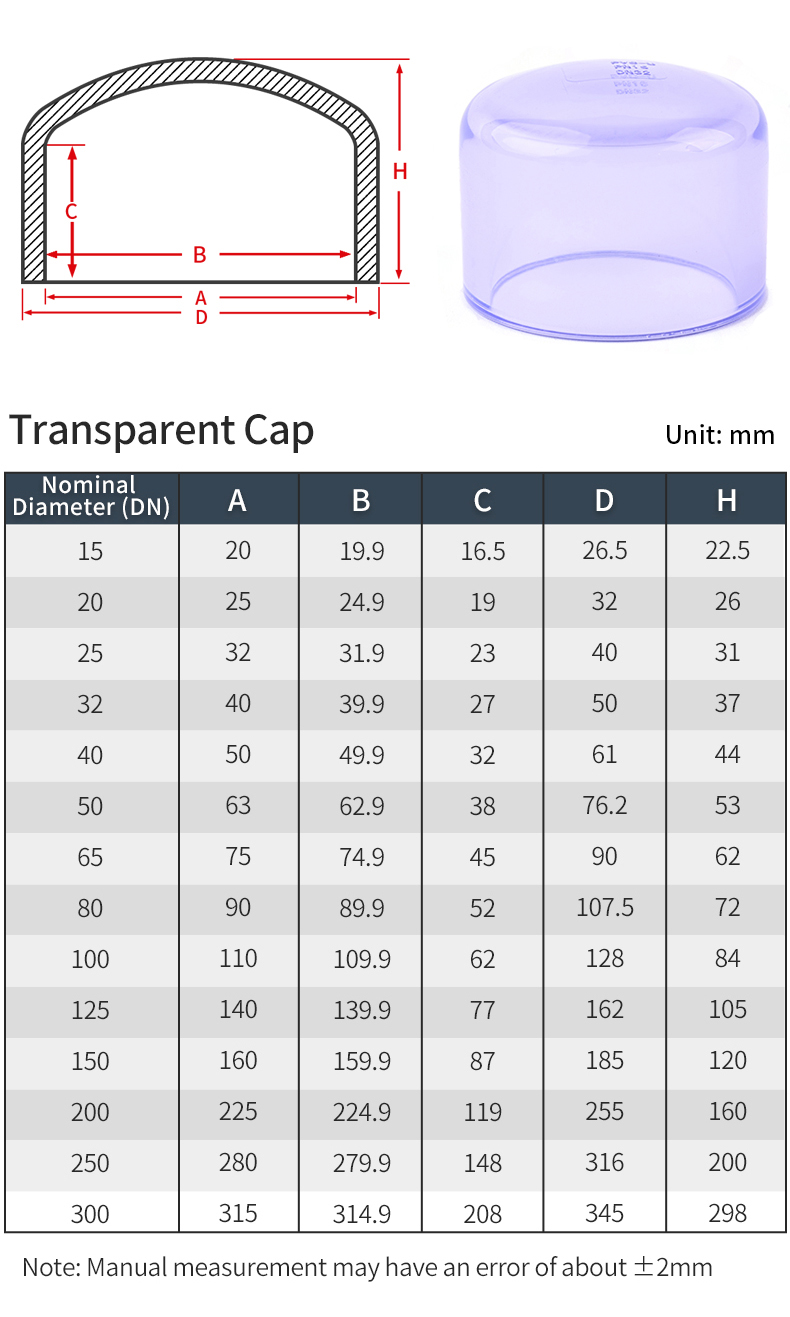 | Key Word: | Clear PVC Pipe Fitting End Cap DIN PN16 | |||