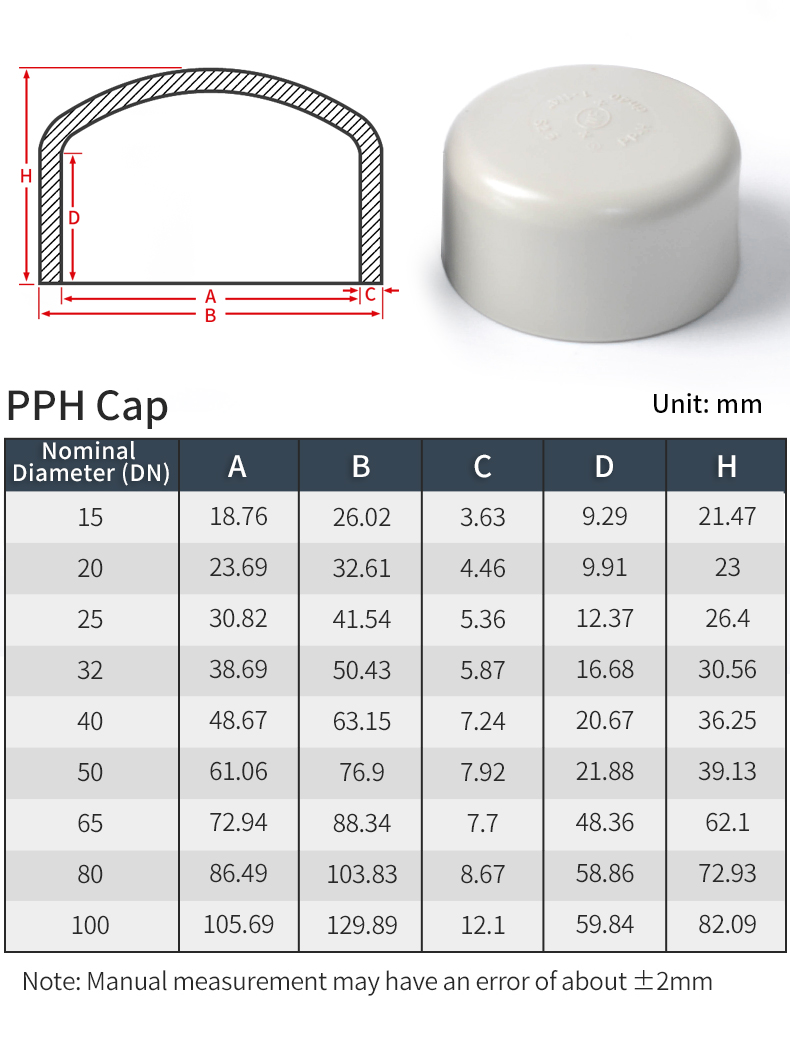 | Key Word: | PPH Pipe Fitting End Cap for Butt Weld | |||