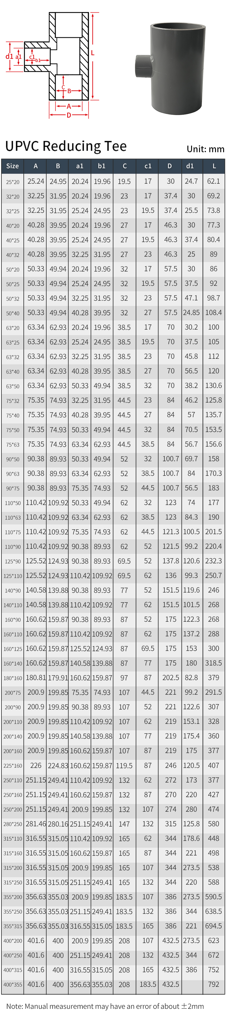 | Specifications: | Size(dimensions): | 20-25-32-40-50-63-75-90-110-125-140-160-200-225-280-315-355-400mm | ||