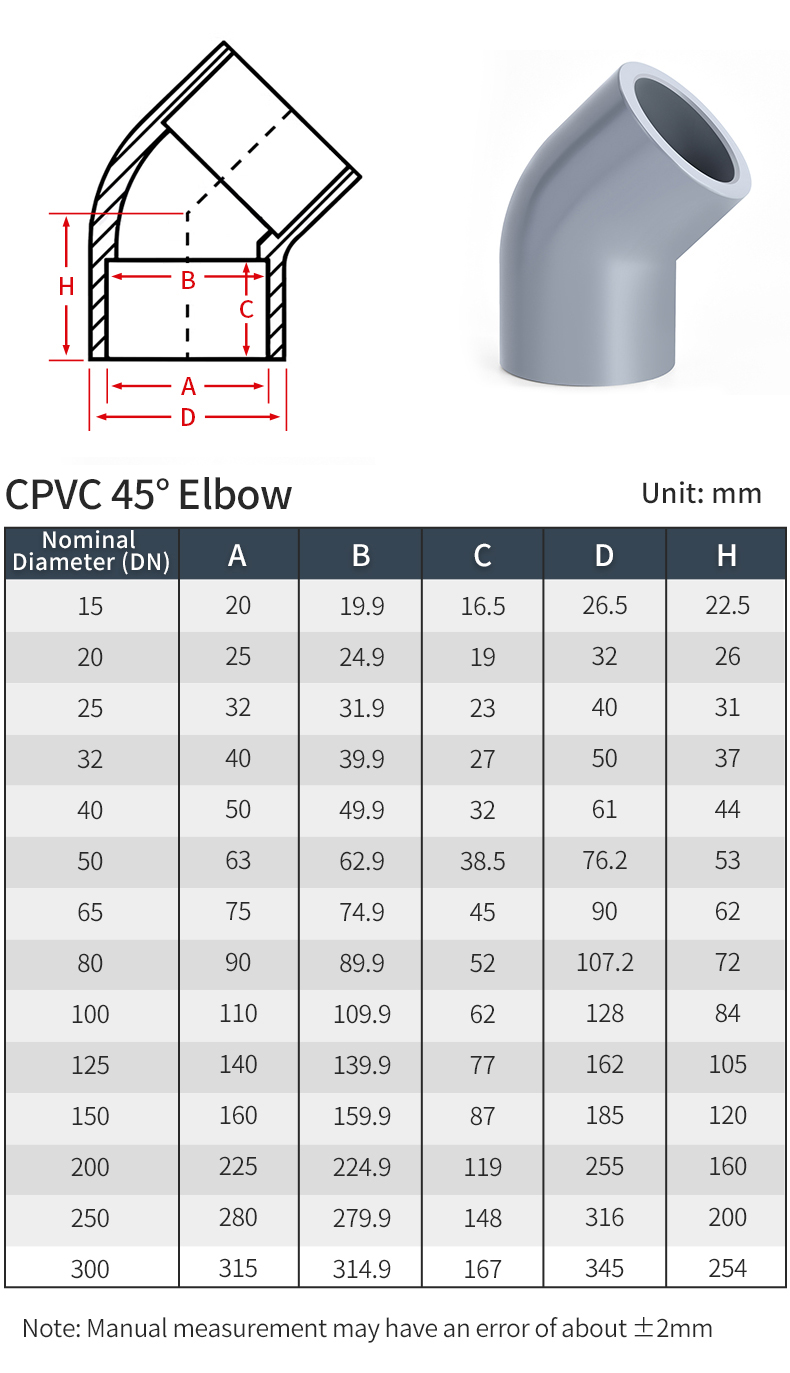 | Key Word: | CPVC 45 Degree Elbow DIN PN16 | |||