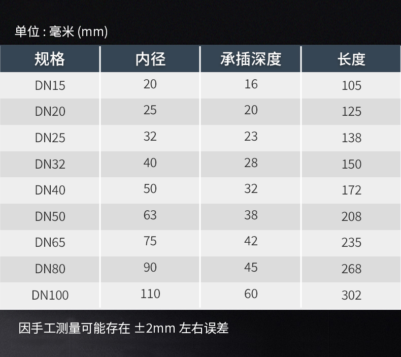 | Specifications: | Size(dimensions): | DN15-20-25-32-40-50-65-80-100-125-150-200-250-300-350-400 | ||