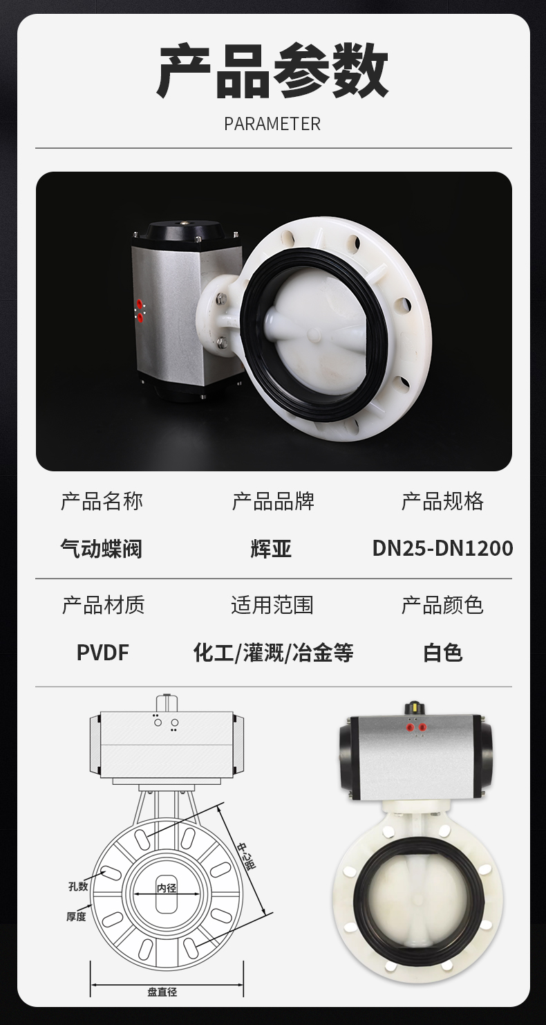 | Key Word: | PVDF Pneumatic Butterfly Valve DN25 to DN300 | |||