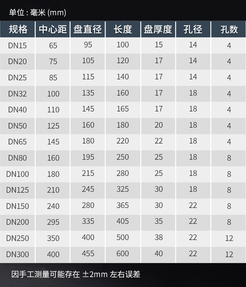 | Specifications: | Size(dimensions): | DN15-20-25-32-40-50-65-80-100-125-150-200-250-300-350-400 | ||