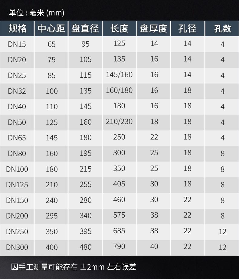 | Specifications: | Size(dimensions): | DN15-20-25-32-40-50-65-80-100-125-150-200-250-300-350-400 | ||